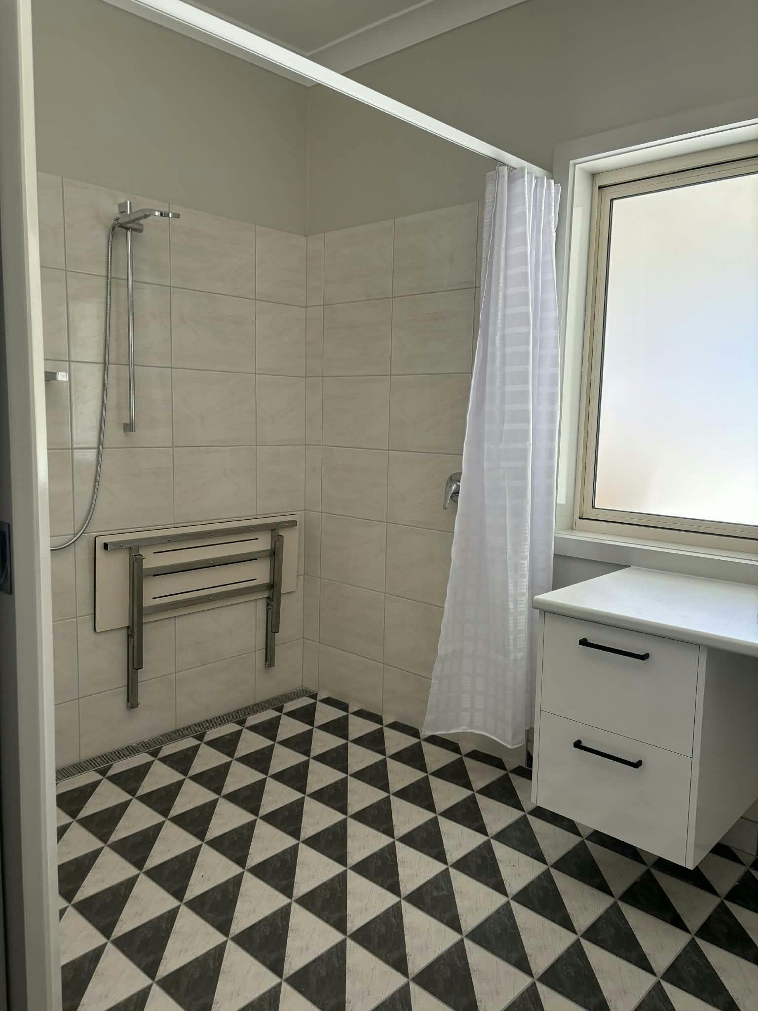 Accessible Bathroom: A fully accessible bathroom, complete with a roll-in shower, ensures ease of use for all guests, especially those with mobility aids.